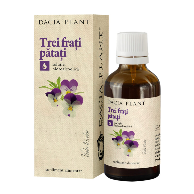 Trei Frati Patati tinctura este o solutie hidroalcoolica obtinuta prin preparare la rece din partile aeriene ale plantei Viola tricolor.